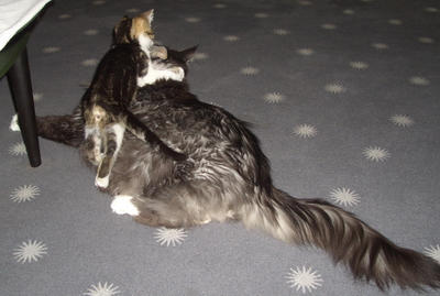 Mittlerweile ist Louis 8 Kg schwer und ein riesiger Kater. Aber Mona hatte immer noch das Sagen. Das war nie im Zweifel. Als Mona älter wurde, fing